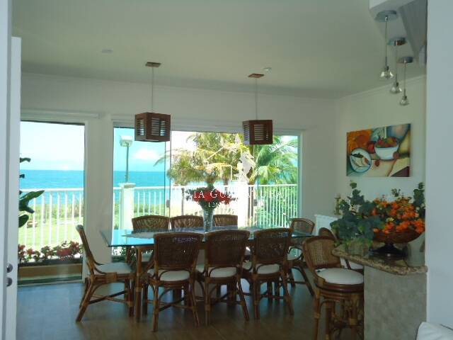 Casa Frente ao Mar sendo 3 suítes climatizadas, lavabo, lavanderia , depósito, terraços com vista panorâmica para a praia, mobiliada. Aceita financiamento bancário. Estuda permuta em Guaratuba. São 2 vagas duplas de garagem.
